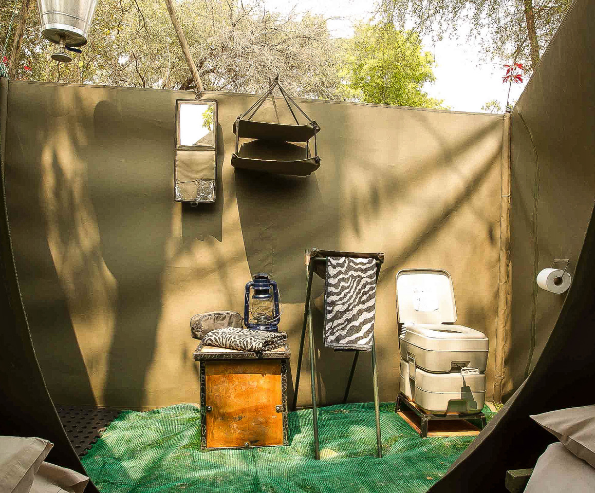 All tents have en suite bush bathrooms, which comprise a bucket shower and a chemical toilet **